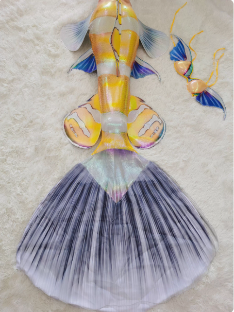 Made of satin fabric, the tail is very lightweight and allows for easy swimming underwater.