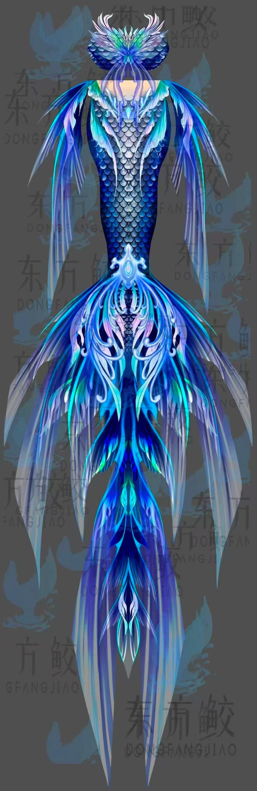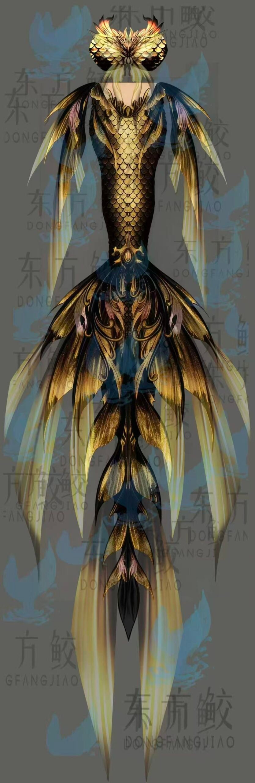 Original Fabric Nine-Headed Yinglong Chinese Style Mermaid Tail, Mermaid Performance Tail for Aquariums, Dragon Tail